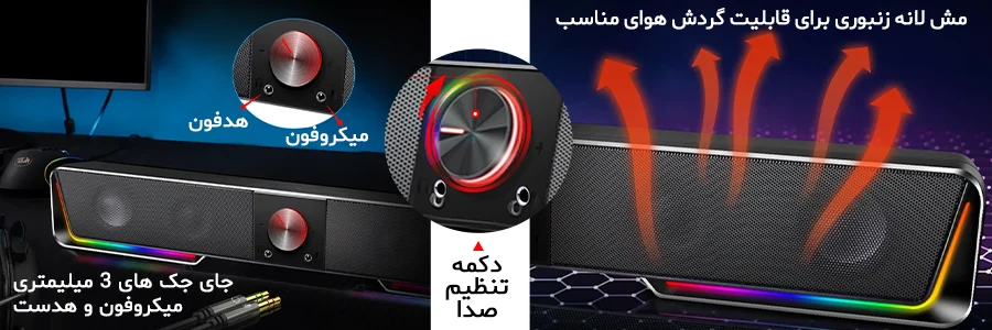 این اسپیکر دارای ورودی های 3.5 میلیمتری برای میکروفون و هدفون است که به شما امکان می دهد هدست یا میکروفون خود را به راحتی متصل کنید. این ویژگی برای کسانی که نیاز به استفاده از میکروفون و هدفون در حین بازی یا کار دارند، بسیار مفید است. با اتصال هدست و میکروفون به اسپیکر، میتوانید به راحتی ارتباط برقرار کنید و تجربه بازی خود را بهبود ببخشید.
