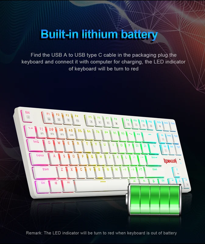 کیبورد گیمینگ مکانیکی ردراگون مدل Anubis K539 می تواند تا 3 دستگاه را جفت کند و در حین شارژ از آن به صورت سیمی از طریق پورت USB-C استفاده شود.