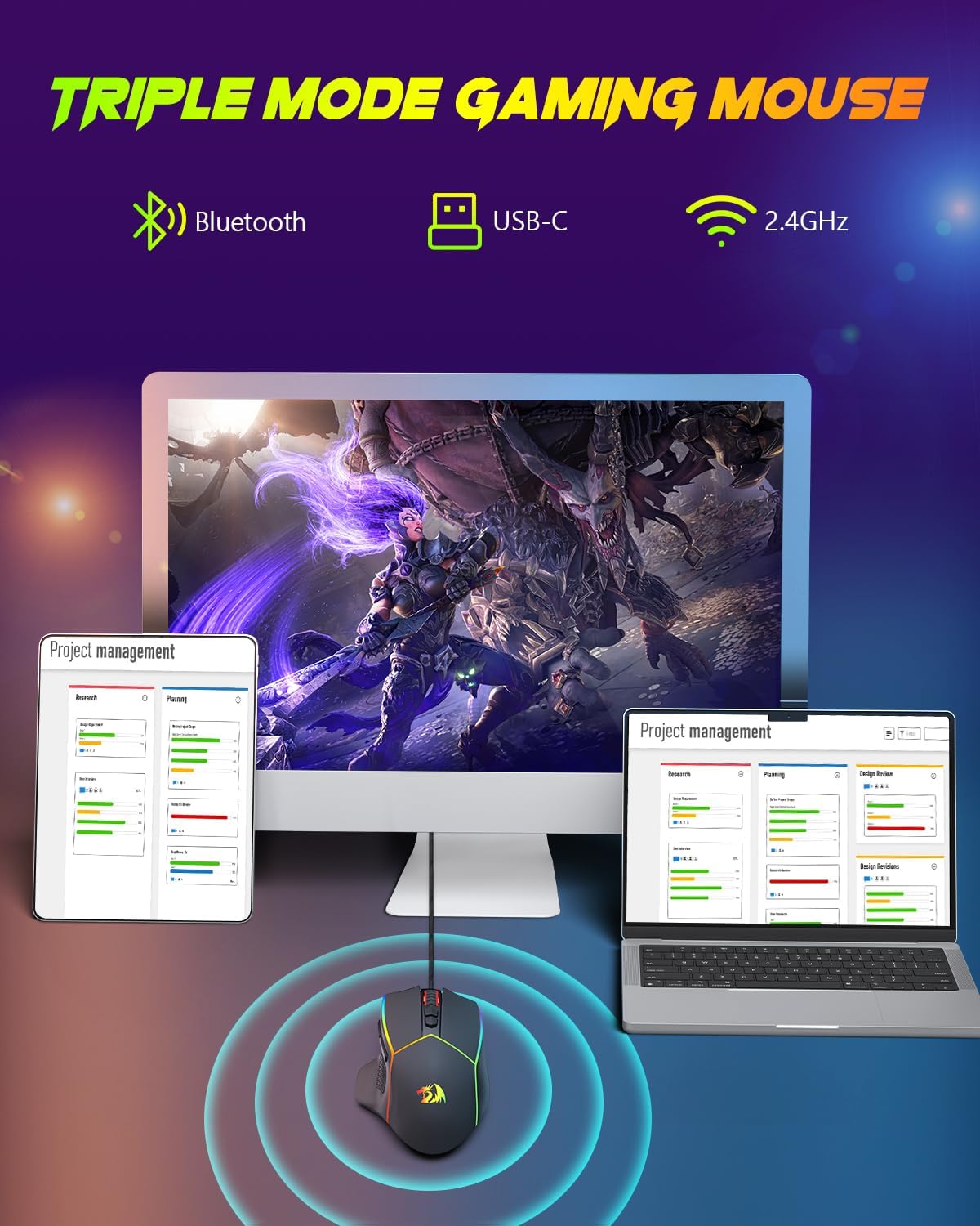موس گیمینگ بیسیم ردراگون AXE M814 PRO RGB