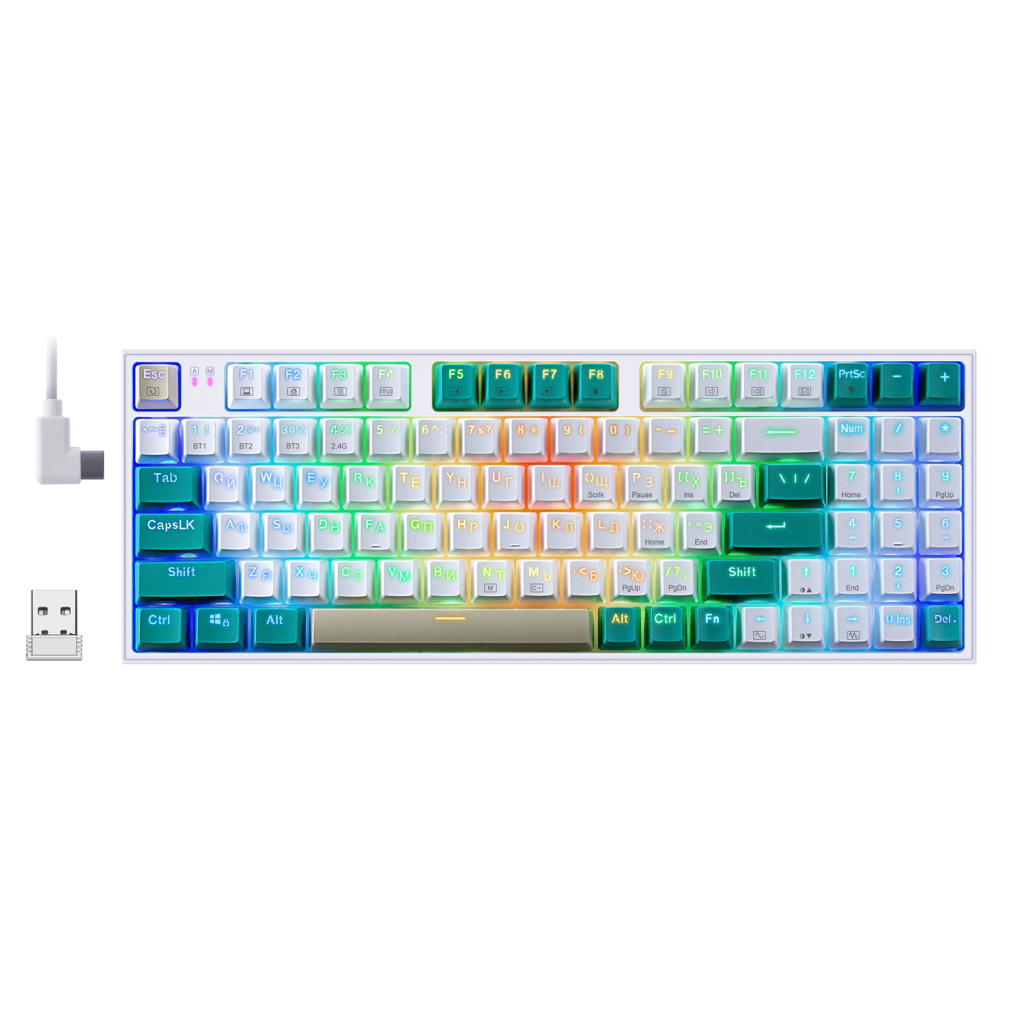 از نظر ظاهری، کیبورد گیمینگ REDRAGON VEIGAR PRO با ترکیب رنگ سفید، سبز و کرم، یک جلوه بصری خاص و چشمنواز دارد. این ترکیب رنگ پویا و جذاب، نه تنها با نورپردازی RGB کیبورد بهخوبی هماهنگ میشود، بلکه میتواند ظاهر ستاپ شما را ارتقاء دهد. وزن مناسب این کیبورد، پایداری لازم را روی میز ایجاد میکند تا در طول بازیهای پرهیجان، کیبورد حرکت نکند و تمرکز شما حفظ شود. طراحی باکیفیت و مستحکم، عمر طولانی مدت این محصول را تضمین میکند.