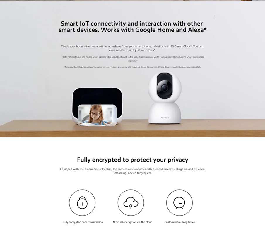 Mi 360° Home Security Camera 2K With super clear 2K image quality and upgraded AI. 2K ultra-clear HD, fully upgraded image quality The Mi 360° Home Security Camera 2K uses ultra-clear HD technology to capture more detailed images Xiaomi Smart Camera C400